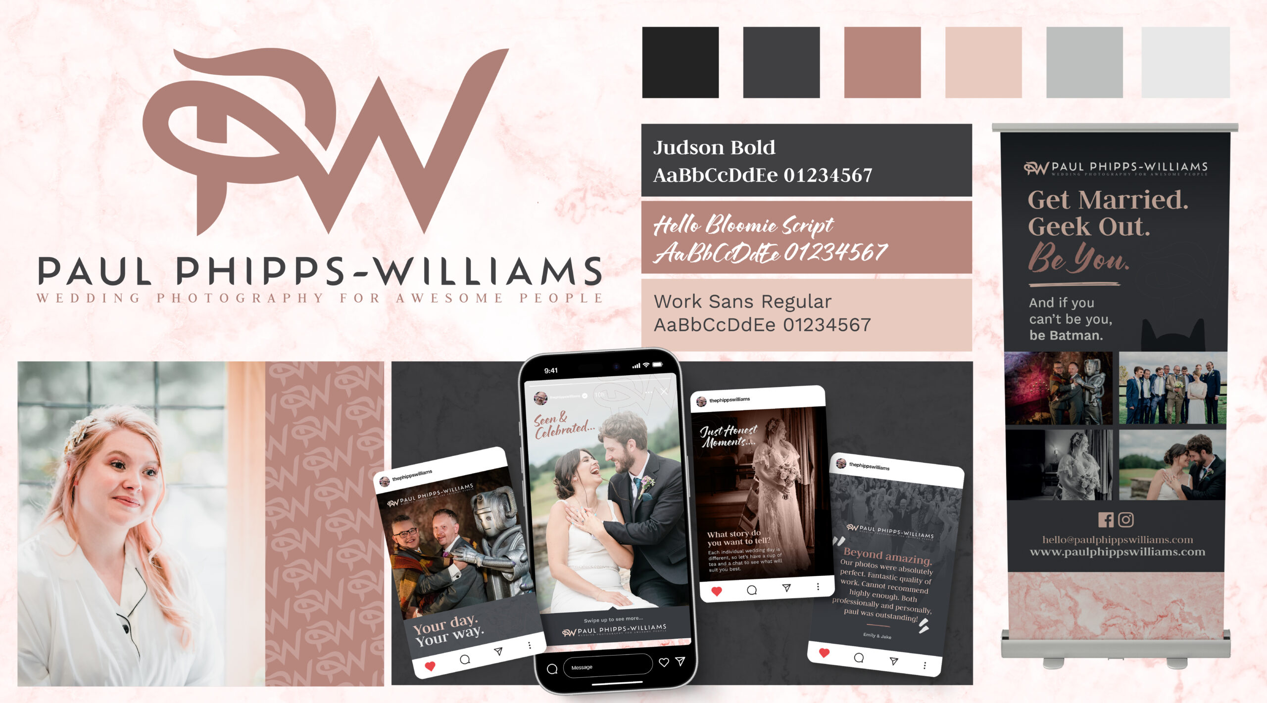 Paul Phipps-Williams is an experienced photographer who was preparing to step into full-time wedding work. He knew the quality of his photography was strong and that his clients adored him. The challenge was that his brand did not yet reflect the level of polish or personality needed for the next stage of his career. He wanted something that felt premium and confident, yet still approachable and true to who he is. Weddings are emotional. Couples need someone they can trust. Paul needed a brand that could communicate that before he ever picked up a camera.